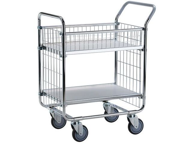 Chariot à plateaux bois, force: 200 kg, hauteur hors tout: 940 mm, largeur hors tout: 460 mm, longueur hors tout: 800 mm, nb de plateaux: 2, roulette ø: 125 mm, roulette bandage: caoutchouc, châssis matériau: acier, plateau matériau: bois + revêtement plastique, poids du produit: 22.0 kg, type de roulette: pivotantes, plateau largeur utile: 425 mm, plateau longueur utile: 620 mm