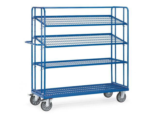 “ Capacité de charge max. de 500 kg. Chariot de transport ou de stockage parfait pour équiper vos ateliers. Composé d'un plateau fixe et 3 amovibles et inclinables à 15° ou 30°. Deux dimensions de plateaux disponibles : 1250 x 610 ou 1650 x 610 mm. [...] ”