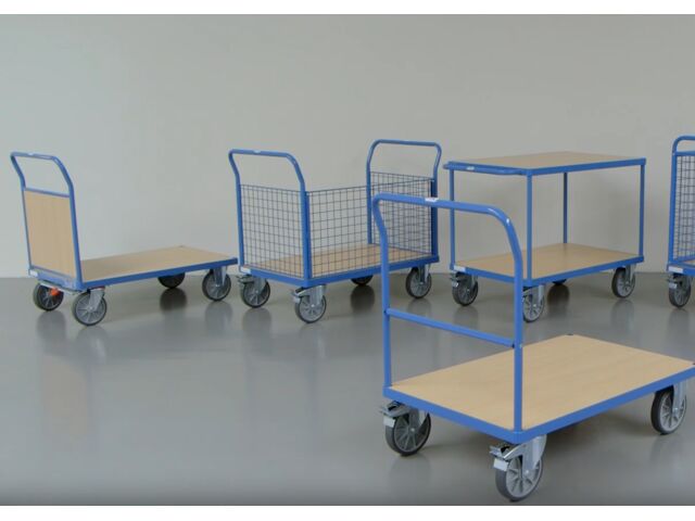 “ - Longueur totale : 1120 mm - 2 roues pivotantes (avec freins) et 2 roues fixes à bandage TPE - Hauteur totale : 990 mm" ”