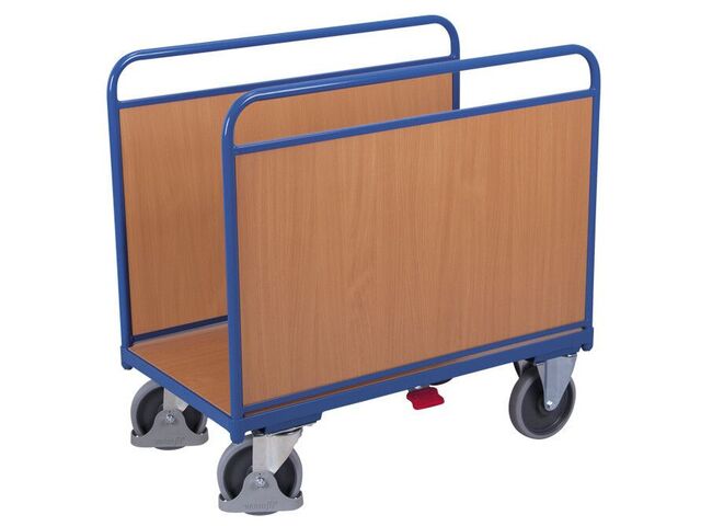 Un chariot à ridelles bois - Capacité 500 KgCe chariot de manutention professionnel est conçu pour le transport sécurisé de charges lourdes jusqu’à 500 kg. Grâce à ses parois longitudinales en panneaux dérivés du bois à protection permanente, il résiste efficacement aux chocs et aux rayures. Son design pratique avec profil en L facilite le chargement et le déchargement des marchandises.Caractéristiques techniques Système modulaire avec construction au sol robuste Parois bois résistantes aux impacts et rayures Roues Ø 200 mm, largeur 40 mm, en caoutchouc thermoplastique gris Roulements à billes de précision avec filetage non marquant Frein central EasySTOP (1 roulette pivotante et 1 roulette fixe avec frein) Capacité de charge : 500 kg Protection des pieds intégrée Dimensions disponibles : Réf. 15.0025.01 : 1060 × 600 × 1045 mm (zone de chargement 1060 × 540 mm) Réf. 15.0025.02 : 1060 × 700 × 1045 mm (zone de chargement 1060 × 640 mm) Réf. 15.0025.03 : 1260 × 800 × 1045 mm (zone de chargement 1260 × 740 mm)Utilisation et domaines d’applicationIdéal pour les ateliers, entrepôts, services logistiques et industriels, ce chariot facilite le déplacement de marchandises volumineuses, cartons, pièces mécaniques ou matériaux. Ses parois pleines maintiennent les charges bien en place, même lors des déplacements fréquents.Pourquoi choisir ce chariot à ridelles ? Sécurité renforcée : système EasySTOP avec frein central pour immobiliser le chariot facilement. Protection : panneaux bois protégés, structure solide en acier. Confort d'utilisation : roues silencieuses, non traçantes et résistantes aux sols industriels.Ce chariot à ridelles professionnel allie robustesse, ergonomie et sécurité, pour une manutention plus simple et efficace au quotidien.