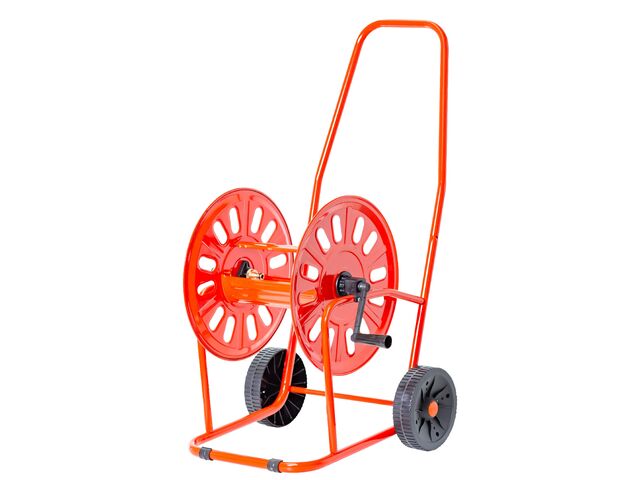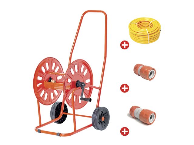 Chariot porte-tuyaux 5/8 en acier peint époxy avec tuyau d'eau Tricotop de 50 mètres.