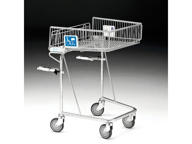 Conçu pour permettre aux personnes à mobilité réduite de faire leurs courses de manière autonome et confortable, ce panier de shopping 62 L se fixe solidement à une chaise roulante grâce à ses pinces d’accrochage robustes.La structure est réalisée en tubes et tiges d’acier, avec une finition électrozinguée brillante et revêtue d’une peinture polyester transparente protectrice. Le panier, monté sur quatre roulettes pivotantes Ø 125 mm en caoutchouc gris anti-traces avec roulements à billes et pare-fils, glisse facilement dans les allées d’un supermarché.Pour une ergonomie optimisée, la hauteur a été soigneusement étudiée, et la base est surélevée, facilitant l’accès aux produits sans contrainte.Caractéristiques techniques : Capacité : 62 litres Dimensions extérieures : 640 × 594 × 940 mm Charge utile : non spécifiée, panier conçu pour l’usage en supermarché Structure : tubes et tiges d’acier Finition : électrozinguée brillante + peinture polyester transparente Roulettes : Ø 125 mm en caoutchouc gris anti-trace, 4 pivotantes avec roulements à billes Équipement : pinces de fixation sécurisée de la chaise roulante Poids net (tara) : 14,5 kg Utilisation : supermarchés, zones de vente accessibles aux personnes en fauteuil roulant Avantages : Permet à l’utilisateur en fauteuil roulant d’accéder aux courses en toute sécurité Capacité de rangement confortable (62 L) Roues de qualité pour un déplacement fluide et silencieux Construction robuste et finition soignée pour un usage intensif Fixation solide à la chaise roulante garantissant stabilité et sécuritéCe panier de shopping 62 L est la solution idéale pour les établissements souhaitant offrir plus d’autonomie et d’accessibilité aux clients en fauteuil roulant, tout en conservant efficacité et sécurité dans l’espace de vente.