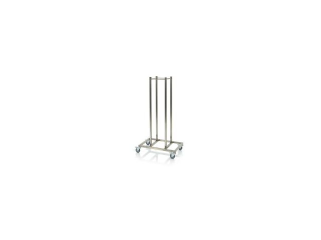 Chariot d'empilage pour plateaux porte-bacs de dimensions norme Europe 600 x 400 mm. Une solution pratique et fiable pour le rangement et le déplacement de vos plateaux roulants et qui vous offre un substantiel gain de place.Structure en acier inoxydable qui vous permet d'empiler et de stocker jusqu'à 15 chariots porte-bacs positionnés en quinconce, les roues vers le haut. Equipé de 4 roulettes à frein faciles à manoeuvrer, dont la bande de roulement anti-dérapante en santoprène assure un déplacement fluide et silencieux.Caractéristiques techniques :Matériau : acier inox Roues : pivotantes avec frein Dimensions Lxlxh : 600 x 410 x 1180 mm Dimensions montant à montant : 270 x 270 mm
