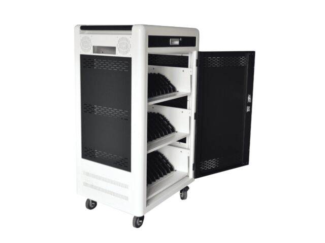 Capacité de charge : Jusqu'à 30 PC portables ou tablettes de 15.6"Dimensions du chariot : H: 1350 mm x L: 730 mm x P: 590 mmPoids net : 91 kgCompartiments indépendants : 3 compartiments fixesTiroir coulissant : Pour PC portable professeur jusqu'à 17"Zone technique : Protection contre la foudre, interrupteur marche/arrêt avec fusible 15AGestion des câbles : Passage optimisé pour éviter les enchevêtrementsConstruction écologique : Acier 30% recyclé, peinture poudre écologique