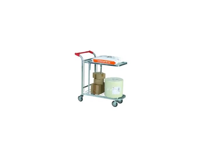 Chariot de magasinier ou d’entrepôt empilable, il est équipé de 2 tablettes qui supporte une charge jusqu#039;à 300 kg. La surface est zinguée et la poignée est recouverte de plastique pour une utilisation plus agréable. Informations détaillées 4 roues pivotantes de 12.5 cm recouvertes de caoutchouc pour une utilisation silencieuse et simple Longueur (cm) : 103 Hauteur (cm) : 102 Largeur (cm) : 53