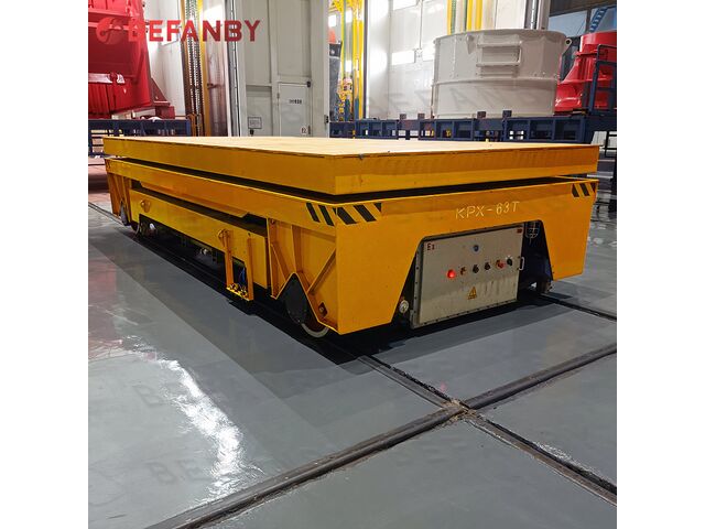 Le chariot élévateur hydraulique sur rails KPX-63T de BEFANBY est une solution puissante dédiée à la manutention de charges lourdes jusqu’à 63 tonnes sur plateforme rail. Il intègre un système de levage hydraulique et une alimentation électrique par batterie, garantissant force et précision durant le transport. Conçu pour s’intégrer aux lignes de production, entrepôts ou ateliers nécessitant une logistique de lourdes charges, il se distingue par sa robustesse et sa fiabilité.