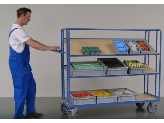 Chariot haut à plateaux inclinables, 3 étagères amovibles, 1 560 mm haut | 4255 - produit présenté par FETRA FRANCE