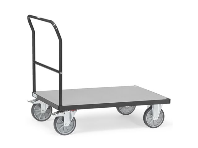 Chariot de manutention multifonctions à dossier modulable, pouvant transporter des charges lourdes jusqu'à 500 et 600 kg. Châssis robuste en tube d'acier mécano-soudé. Modulable, le dossier de poussée peut être monté des 2 cotés du chariots. Chariot d'atelier équipé d'un plateau en bois mélaminé solide gris clair, non salissant et qui s'accorde parfaitement avec les roues à bandage TPE. Finition soignée avec revêtement époxy gris anthracite RAL 7016, plus sobre et intemporel, ce chariot de transport s'intègre parfaitement aux milieux de travail moderne. Les 2 roues pivotantes avec freins et les 2 roues fixes, à bandage TPE sont non traçantes et confort, avec peu de résistance au déplacement. Leur moyeu à roulement à billes central, sans entretien, offre robustesse, précision et longévité avec des charges importantes et une vitesse élevée.Plusieurs dimensions de plateaux sont disponibles, en fonction de vos besoins : - 850 x 500 mm - 1000 x 600 mm - 1000 x 700 mm - 1200 x 800 mm.