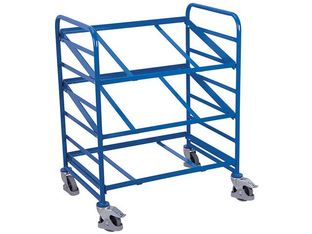 “ Chariot porte bacs inclinable pour 6 bacs Euronorm. Disponible en 2 versions : plateau mélaminé ou structure tubulaire en acier. Chariot monté sur 4 roulettes pivotantes dont 2 avec freins. 3 plateaux de dimensions 825 x 604 mm dont deux [...] ”