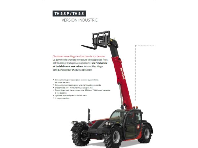 Chariot télescopique Magni TH 5.8 ( Capacité 5 000 KG - Hauteur de levée 8 mètres )