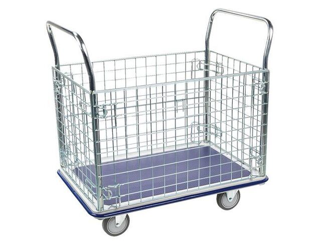Conception robuste entièrement mécano-soudée avec châssis en tube de 35 x 20 mm et renfort sous plateau. Plateau encastré. De chaque côté, un demi-panneau rabattable facilite le chargement et le déchargement des charges. Plateau du fond en bois médium épaisseur 16 mm, encastré, ne se fend pas, n'éclate pas. Aucun risque d'écharde. Poignée à hauteur ergonomique, en tube de 35 x 20 mm pour une bonne prise en main. Habillage grillagé : maille de 50 × 50 mm. Produit livré prêt à l'emploi : un gain de temps pour les professionnels, sauf poignée à monter. Roues 2 fixes + 2 pivotantes à frein à bandage TPE sur roulement à billes, non tachantes, silencieuses. Effort au démarrage réduit de 50 %. Conformes à la norme EN 1757. Sur demande : attelage + timon pour mise en train.