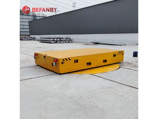 Conçu pour la manutention lourde sur rail, ce chariot de transfert de batteries ferroviaires de 34 tonnes intègre une plateforme à rotation électrique à 360 degrés. La solution BEFANBY se distingue par son plateau tournant installé dans une fosse et sa capacité à effectuer des déplacements et des virages précis sur voies ferrées. Sa robustesse mécanique et sa commande intelligente en font un équipement fiable pour l’acheminement industriel de charges massives.