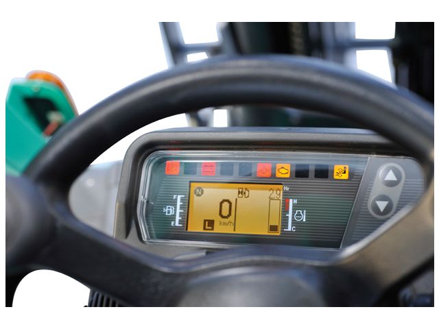 Il est comprend une cabine qui offre une visibilité exceptionnelle, un siège réglable à suspension intégrale, une colonne de direction ajustable avec fonction mémoire, des pédales de type automobile, des leviers hydrauliques au tableau de bord pour le contrôle des opérations du mât et un display muni de voyants d'avertissement essentiels et un affichage LCD avec indicateur de vitesse, horloge et double compteur horaire.