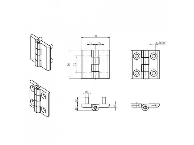 Caractéristiques techniques de la Charnière à visser 180° et 270° d'EMKA: