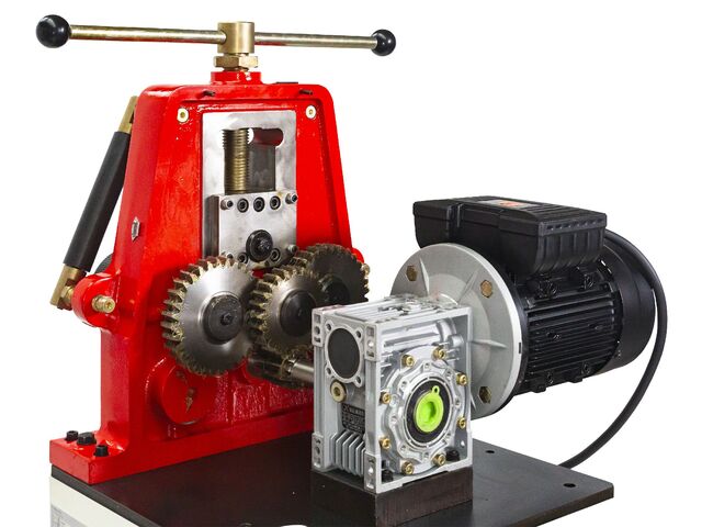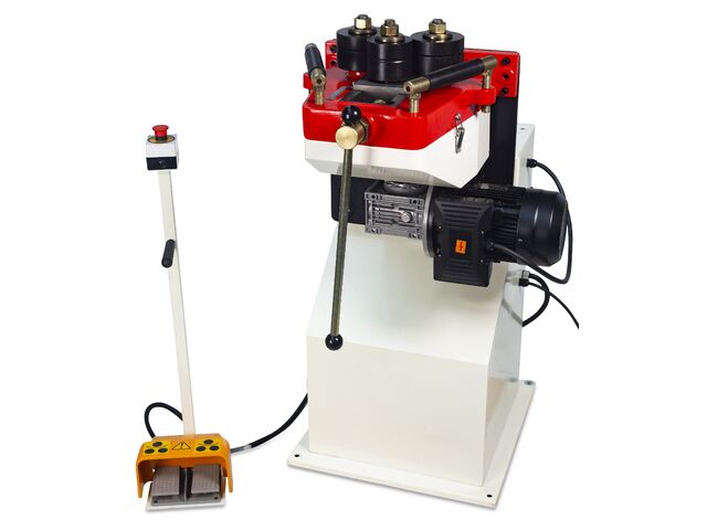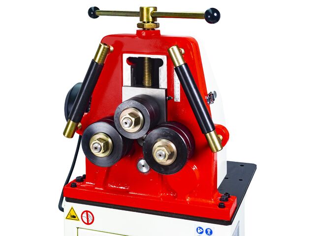 Cintreuse à 3 galets électrique avec 2 rouleaux inférieurs entraînés et un rouleau supérieur appliqué manuellement, équipé d'un puissant moteur monophasé 230V 1,1 kW.