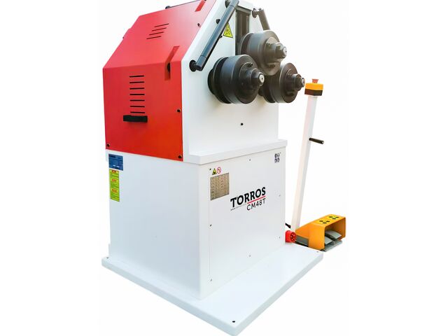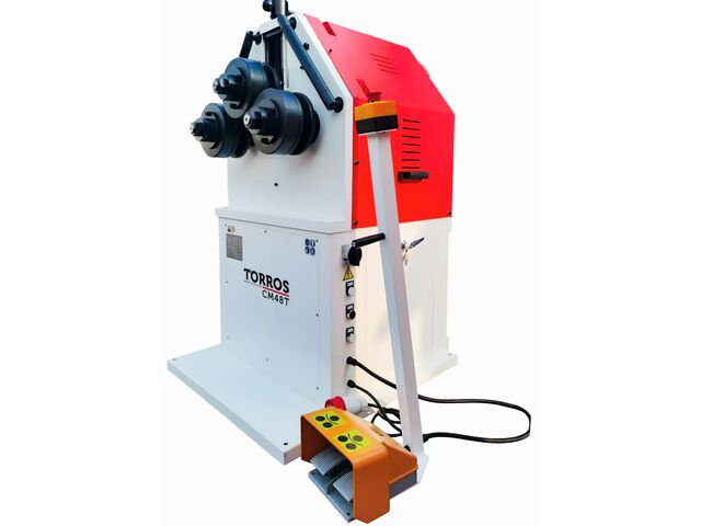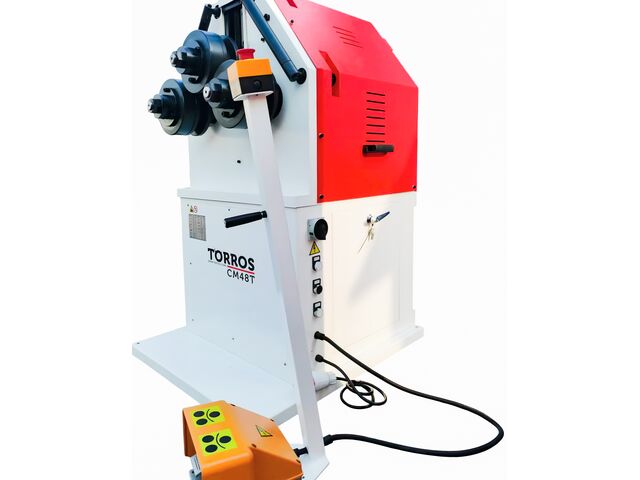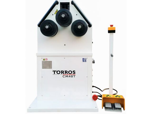 Pourquoi la Torros CM48T est indispensable dans votre atelier :La CM48T est bâtie pour un usage industriel continu. Grâce à son moteur de 2,2 kW et un diamètre d'arbre de 50 mm, cette machine traite sans effort des profilés plus lourds, impossibles à cintrer avec des machines standard en 230 V. De plus, la commande basse tension 24V garantit un pilotage sûr et fiable dans tout environnement professionnel.