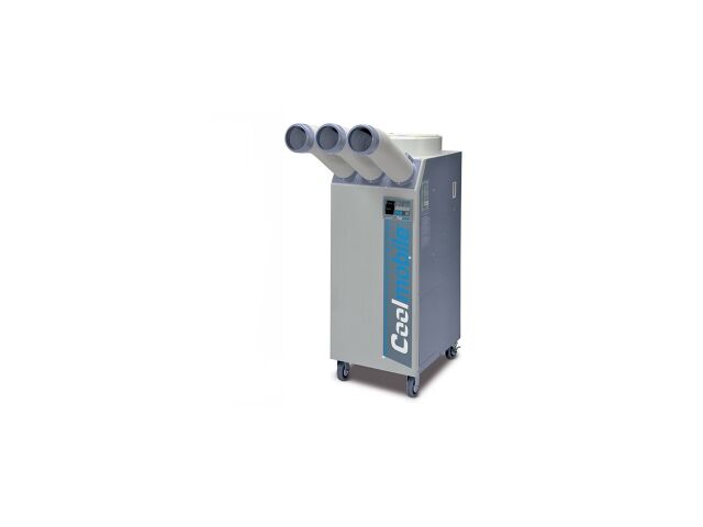 “ Rafraîchisseur d'air mobile avec gaines de distribution. Gaines de distribution flexibles et orientables. S'utilise dans de nombreux domaines d'application. Refroidissement au moyen d'un système de pompe à chaleur. Installation rapide et facile à déplacer ”