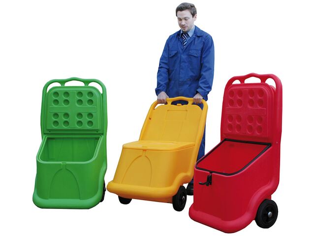 189 €HT (hors frais de port) - Ce bac à sel de déneigement ou à sable mobile d'une capacité de 75 L.