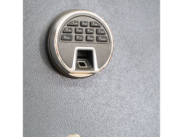 Équipé d'un clavier électronique programmable et d'un lecteur d'empreintes digitales pour un accès rapide et facile. Une clé de secours est incluse pour une sécurité supplémentaire.