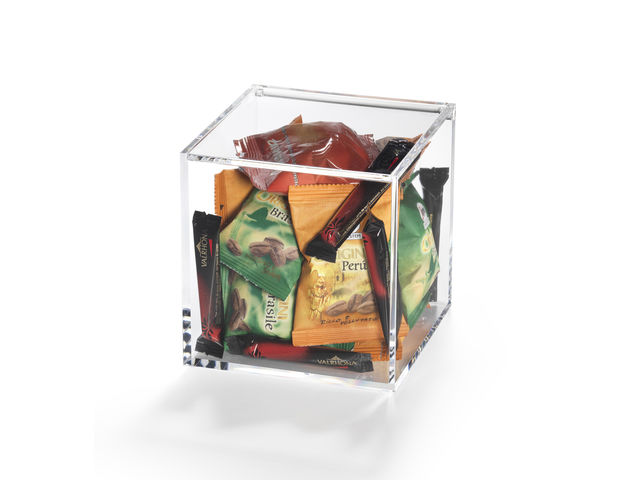 Dimensions intérieures: 117mm X 117mm X 119 mmDimensions extérieures: 128 mm X 128 mm X 128 mmPoids unitaire: 0.429kgPoids du carton: 12kgMatériau: PMMA cristalFinition: Haut de gammePersonnalisation: Sérigraphie sur les faces avant et arrièreApplications: Alimentaire haut de gamme, Café, Cosmétiques, Fleurs, Luxe
