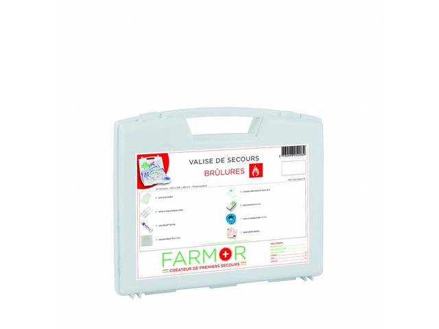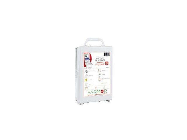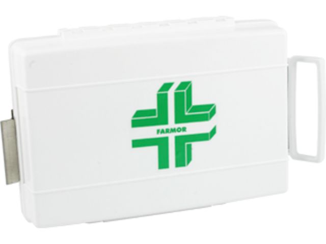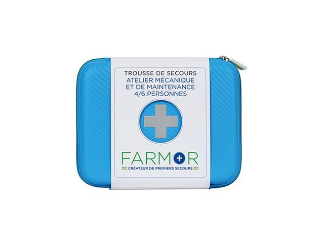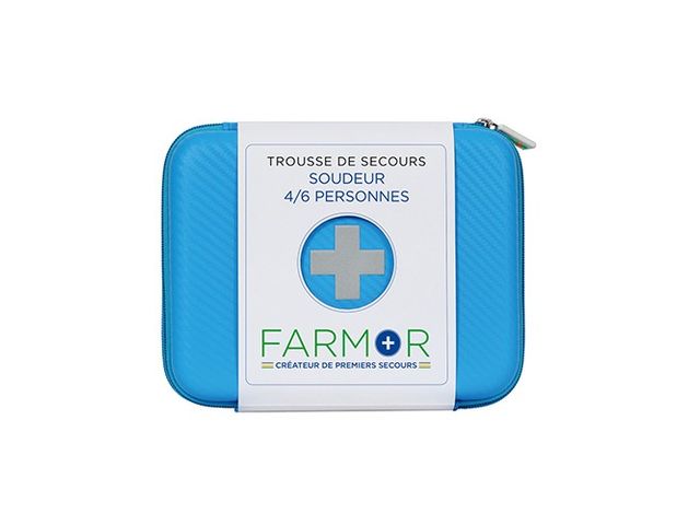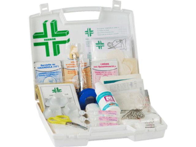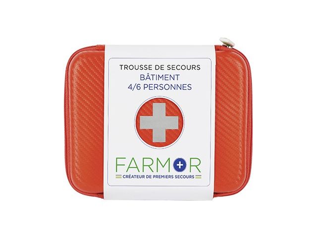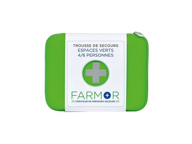 Trousse de secours pour 2 à 6 personnes en polypropylène ou en tissu imperméable. Le coffret de secours pour 4/6 personnes en polypropylène est fourni avec support mural. Valise équipée d'une poignée de transport et un bloc ouverture du couvercle à 90°. Les trousses en tissu sont fabriquées avec un accroche ceinture et une fermeture ZIP. Elle contient le matériel permettant d'apporter les premiers soins à toutes les équipes travaillant en milieu extérieur, et plus particulièrement dans les espaces verts. Coffret livré avec vis et chevilles pour avoir la possibilité de le sceller. Deux modèles disponibles : pour 2 à 4 pers. ou 4 à 6 pers. sous forme de mallette ou de trousse. Composition : Nbre de personnes 2 à 4 personnes 4 à 6 personnes Couverture de survie 1 1 Echarpe triangulaire 1 1 Pansements adhésifs 2 cm x 7,2 cm 10 10 Pansements adhésifs 5,3 cm x 7 cm 2 4 Pansements adhésifs 10 cm x 6 cm 1 1 Pansements compressifs stériles 1 2 Compresses individuelles stériles 20 cm x 20 cm 4 6 Bande extensible de 300 cm x 5 cm 1 2 Bande extensible de 300 cm x 7 cm 1 2 Rouleau de sparadrap sécable 500 cm x 2 cm 1 1 Paire de ciseaux 13 cm à bouts ronds 1 1 Pince à échardes à mors plats 1 1 Paire de gants jetables 1 2 Epingles de sûreté 12 12 Pulvérisateur de 50 ml à la chlorhexidine - 1 Compresses nettoyantes à la chlorhexidine 5 - Compresses d'alcool 70° 2 5 Compresses au calendula 2 5 Compresses antimoustiques 5 10 Sachets de gel décontaminant sans eau 2 3 Sachets de crème réparatrice 2 3 Tampons hémostatiques pour le nez 1 2 Dosettes de sérum physiologique stérile 2 3 Œillères operculées 2 2 Feuillet premiers soins en 10 langues 1 1