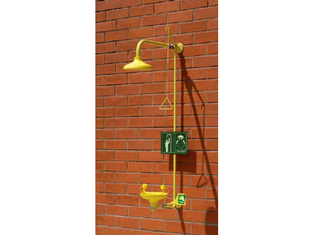 Certifié conforme ANSI Z358.1, EN 15154-1 et 2, DIN 12198:3 et UNI9608 :1993, le combiné mural vertical lave-yeux avec vasque AF4285 est prévu pour une installation en intérieur ou en extérieur en conditions tempérées, idéal pour la décontamination totale du corps et du visage avec un même équipement.