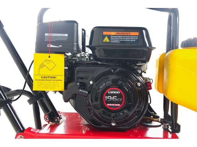 Plaque vibrante 12,1 kN avec moteur essence 6,5 cv et plaque de base 48 x 36 cm. Modèle équipé d'un réservoir d'eau.
