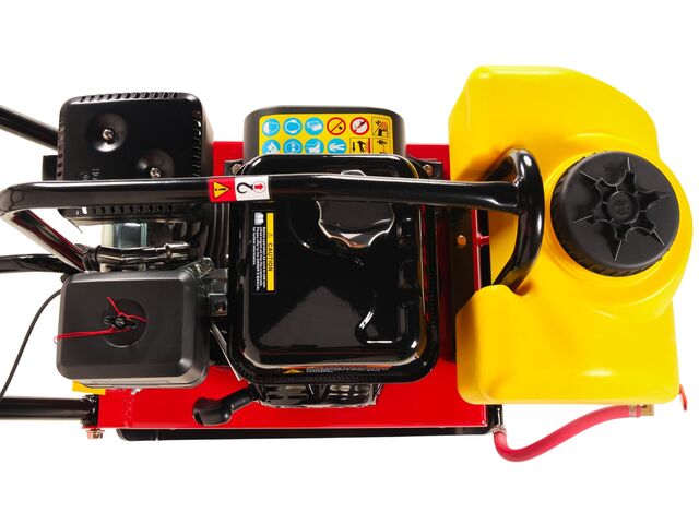 Plaque vibrante 15,5 kN avec moteur essence 6,5 cv et plaque de base 55 x 42 cm. Modèle équipé d'un réservoir d'eau.