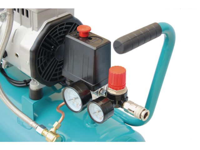 Compresseur mobile, à entraînement direct, silencieux et sans huile 10 bar avec réservoir de 24 litres.