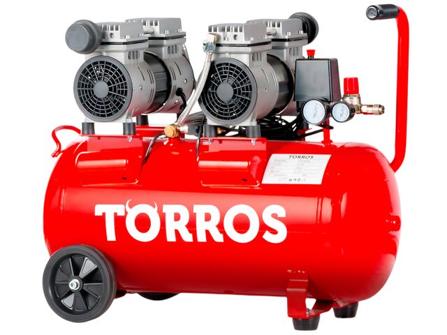 Compresseur silencieux sans huile cuve 50 L 1,5 kW / 2 Ch 280 L/min 8 bar 78 dB(A) 230 V Torros TC502810MS - produit présenté par TORROS