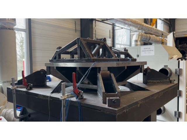 Enfin, nous sommes en mesures de réaliser les validations d’outillages nécessaires avant lancement des essais (mesures de fonctions de transfert, analyse modale expérimentale, …).