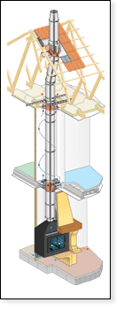 Les conduits de cheminée polycombustibles isolés INOX-INOX sont dix fois plus légers que les conduits traditionnels. Ils permettent des dévoiements à 45° sur 5 mètres et sont parfaitement bien adaptés à la structure légère des charpentes modernes. Leur système d’emboîtement permet un pivotement sur 360°. L’isolation, d’épaisseur et de densité optimales pour chaque diamètre de conduit, maintient une température de fumées idéale et garantit le meilleur fonctionnement de l’appareil de chauffage.