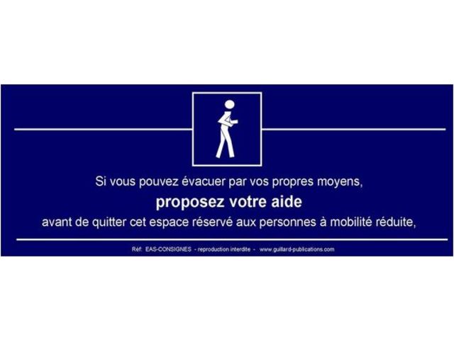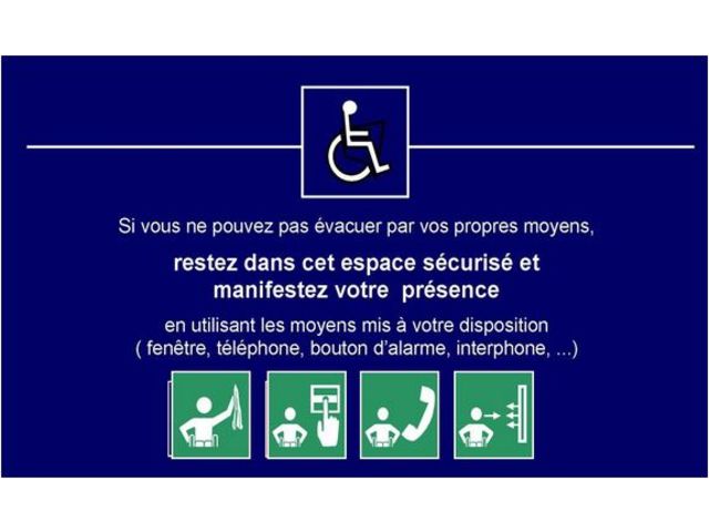 Le panneau de consignes pour ESPACE D'ATTENTE SECURISE pour évacuation différée des personnes à mobilté réduite ( EAS-CONSIGNES) comprend deux parties:
