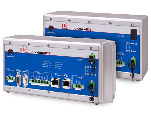 Les contrôleurs confocaux confocalDT IFC2465 et 2466 sont utilisés pour la mesure rapide et très précise de distances et d'épaisseurs et atteignent une résolution de l'ordre du nanomètre. Les modèles multi-peak permettent de mesurer l'épaisseur de jusqu'à 5 couches transparentes simultanément. Les contrôleurs se caractérisent par une grande intensité lumineuse associée à une fréquence de mesure élevée pouvant atteindre 30 kHz. Cela permet d'obtenir une intensité de signal élevée, même sur des surfaces sombres ou rugueuses. Grâce au contrôle rapide de l'exposition, les changements de surface sont parfaitement compensés.