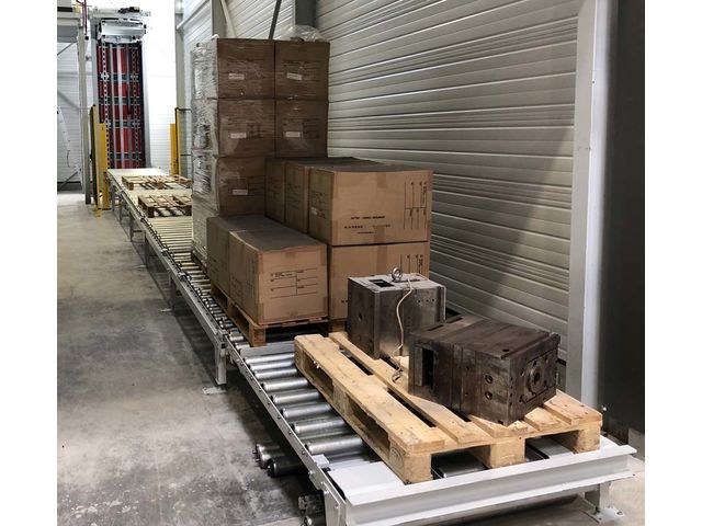Je recherche un devis pour convoyeurs gravitaire de palettes et de quoi les fixer directement au sol. Les palettes types Euro ont un poids max de 1.1 Tonnes et j'aimerai que le convoyeur fasse une longueur d'environ 15m. Et il faudrait au total 30 convoyeurs comme celui-ci.