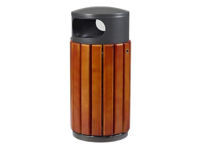 Structure et tête en acier poudré anti-UVTraitement anti-corrosionHabillage : lattes en boisSystème d'ouverture par serrure à clé triangulaire2 ouvertures frontales réduitesFixation au sol possible en 3 points3 couleurs de tête disponibles : bleu, gris manganèse ou jauneCapacité au choix : 40 litres ou 60 litres