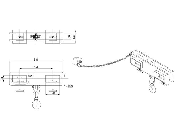 Cet accessoire transforme votre chariot élévateur en outil de levage polyvalent, idéal pour déplacer des machines, fûts, big bags, charges avec élingues ou sangles de levage, ainsi que des charges qui ne peuvent pas être prises directement avec les fourches.