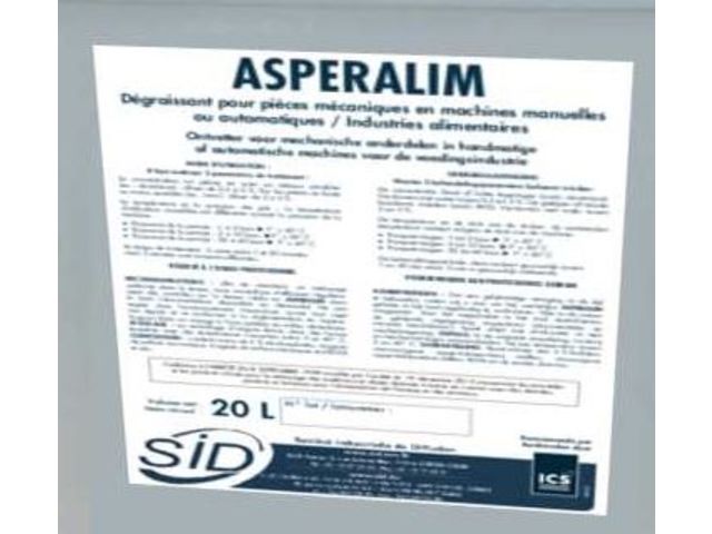 ASPERALIM est un produit liquide en phase aqueuse destiné à être utilisé en substitution des solvants dans les machines de dégraissage pour pièces mécaniques ou plastiques. Sa formulation Spéciale Métaux Sensibles permet une utilisation sans risque sur inox, aciers, fontes, aluminiums, alliages légers, autres métaux ferreux, etc… Très faiblement moussant, ASPERALIM s’utilise aussi bien à froid qu’à chaud. En machine, il est recommandé de travailler à chaud de 40 °C à 90 °C.
