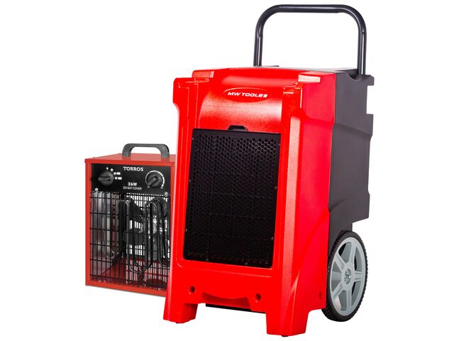 Déshumidificateur pro mobile industriel 90 L/jour en polyéthylène (PE) avec pompe de relevage et chauffage soufflant 3 kW - Efficacité optimale MW Tools BDP90WEL - TORROS