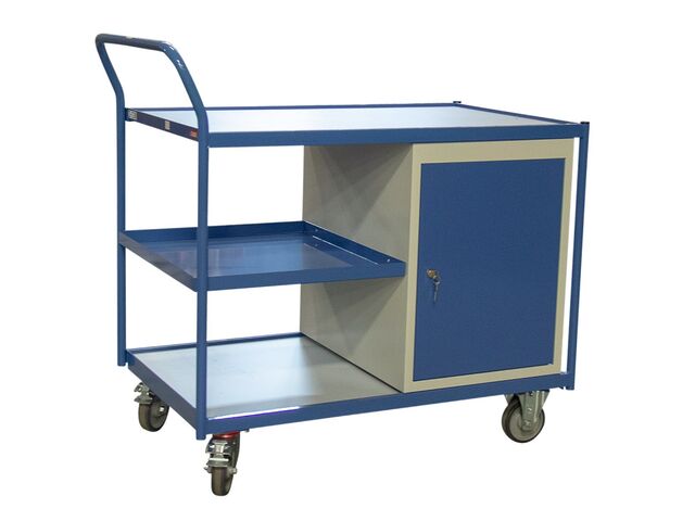 Modèle : 1/2 plateau tôle + 1 bloc porte ; 1/2 plateau tôle + 1 bloc 4 tiroirsCharge (kg) : 250Dim. utile Lxl (mm) : 1000 x 600Dim. ext. Lxlxh (mm) : 1125 x 645 x 1055Haut. poignée (mm) : 1055Ø roues (mm) : 125Nbre de plateaux : 3
