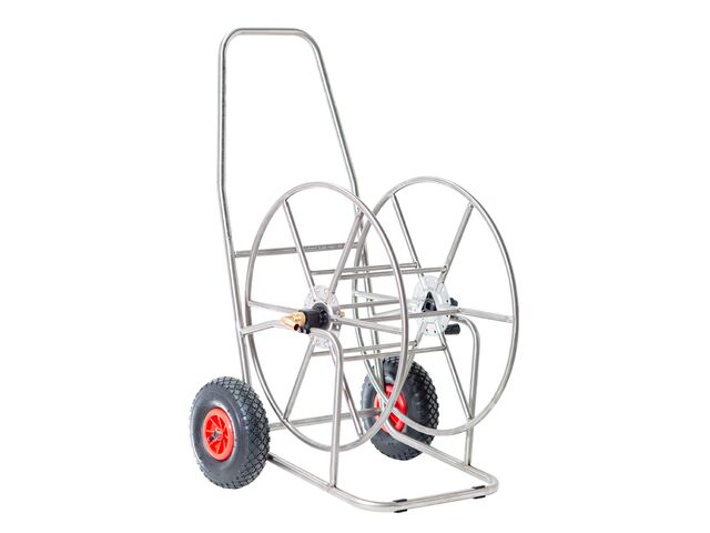 Chariot porte-tuyau en acier inoxydable.