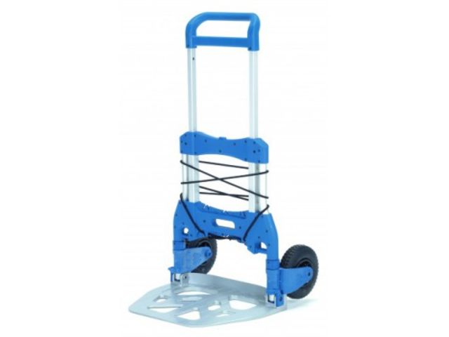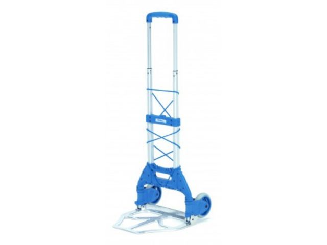 Diable en aluminium équipé d'une bavette et d'un dossier repliables et d'une poignée en caoutchouc. Appareil compact et facile à ranger avec bouton de pliage et dépliage rapide. Tendeur élastique fourni.3 modèles au choix, capacité : 50, 125 et 250 kgRoues en polymère et roues gonflables pour le grand modèle.