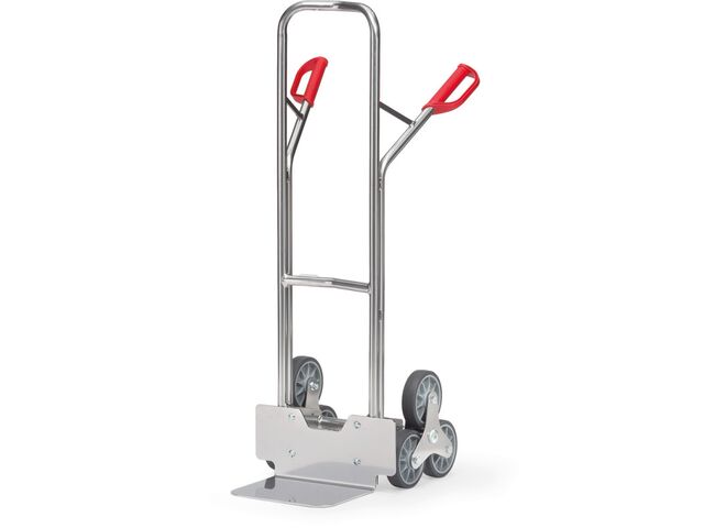 “ Charge max. de 200 kg. Diable escaliers léger et robuste en aluminium. Dossier cintré permettant de charger des éléments ronds comme des rouleaux. Poignées avec arceaux de sécurité pour une manipulation facile. 2 dimensions de pelle disponibles 320 [...] ”