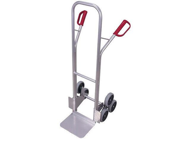 “ Charge max. de 200 kg. 3 types de roues : roulement à bille, caoutchouc ou pneumatiques . Pratique pour franchir les escaliers ou les trottoirs avec ces 3 ou 5 roues étoiles. Poignées avec arceaux de sécurité pour une utilisation plus simple ”