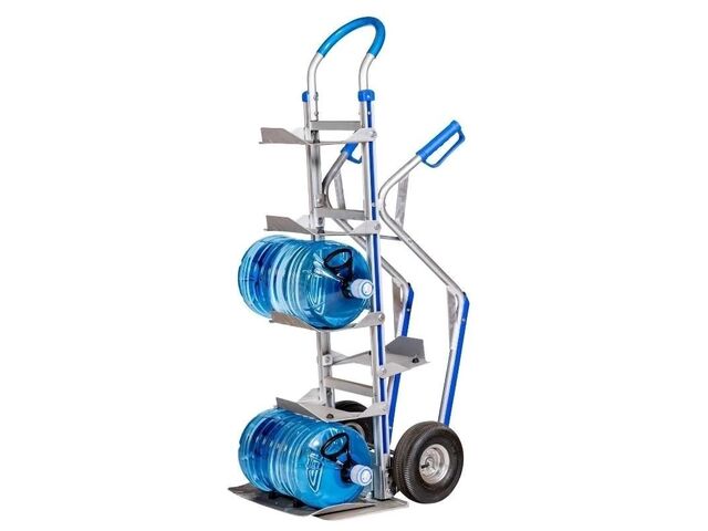 Charge (kg) : 250Long. (mm) : 590Larg. (mm) : 500Haut. (mm) : 1520,3Type de roues : Pneumatiques ; IncrevablesDiable pour : Porte bonbonnes