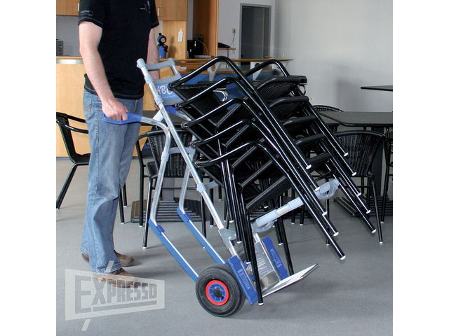 Grâce à son accessoire support de chaises (type 1144), transformez rapidement et facilement votre diable polyvalent EXPRESSO en un diable porte-chaises. Cet accessoire est amovible, il se met et s'enlève rapidement grâce à un son système clipsable