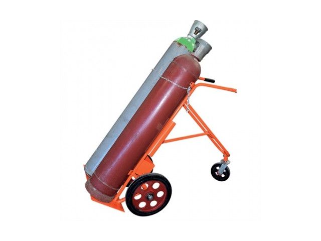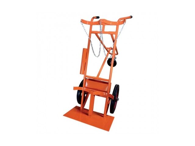 Chariot pour deux bouteilles de toutes tailles.Appareil avec roues à bandages caoutchouc et chaine de sécurité.Capacité : 250 kgPoids : 46 Kg