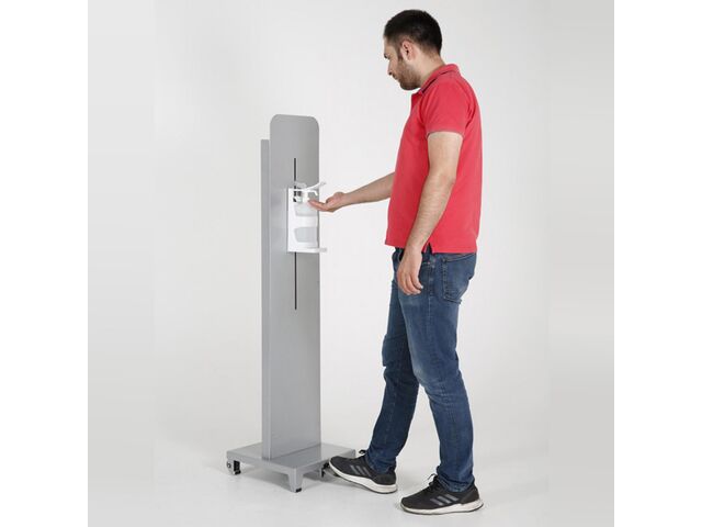 Distributeur Gel/Pédale sur Pied 150 cm Pompe Premium NOIR - EDIMETA - Présentoirs et PLV pour Exposer - Afficher et Présenter