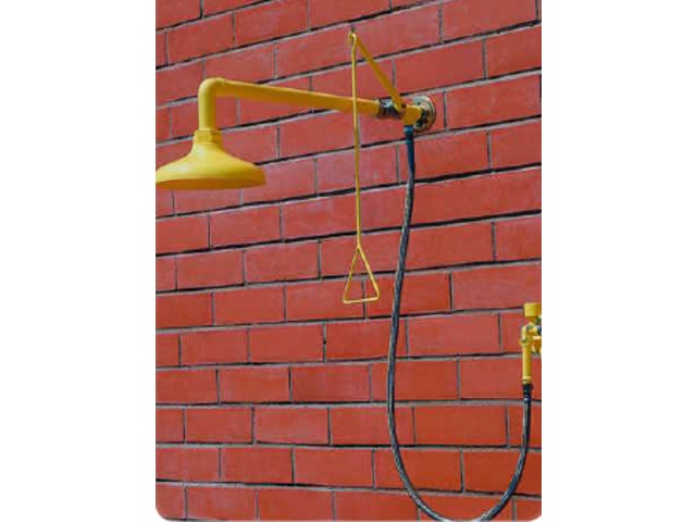 Conforme ANSI Z358.1, EN 15154-1 et 2, DIN 12198:3 et UNI9608 :1993, cette douche murale peut être installée en intérieur ou en extérieur, avec une alimentation d’eau en traversée de mur ou non.
