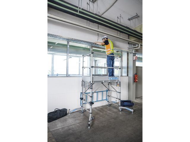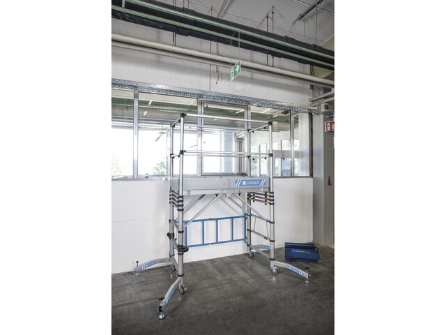 Echafaudage mobile aluminium Teletower 2, réglable sur 5 hauteurs de travail différentes pour travaux.